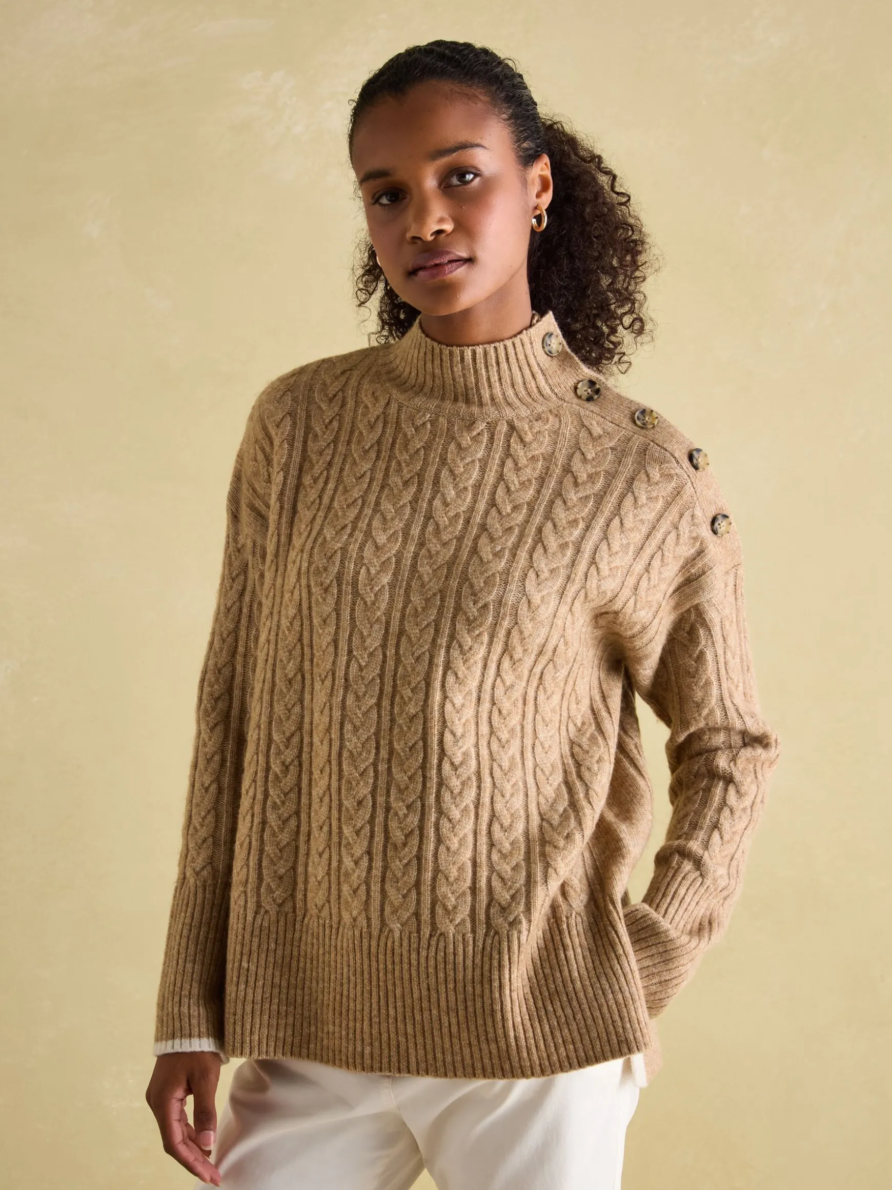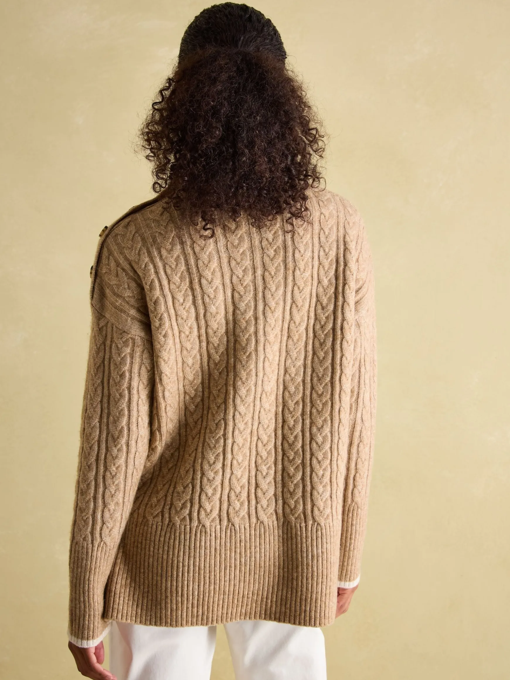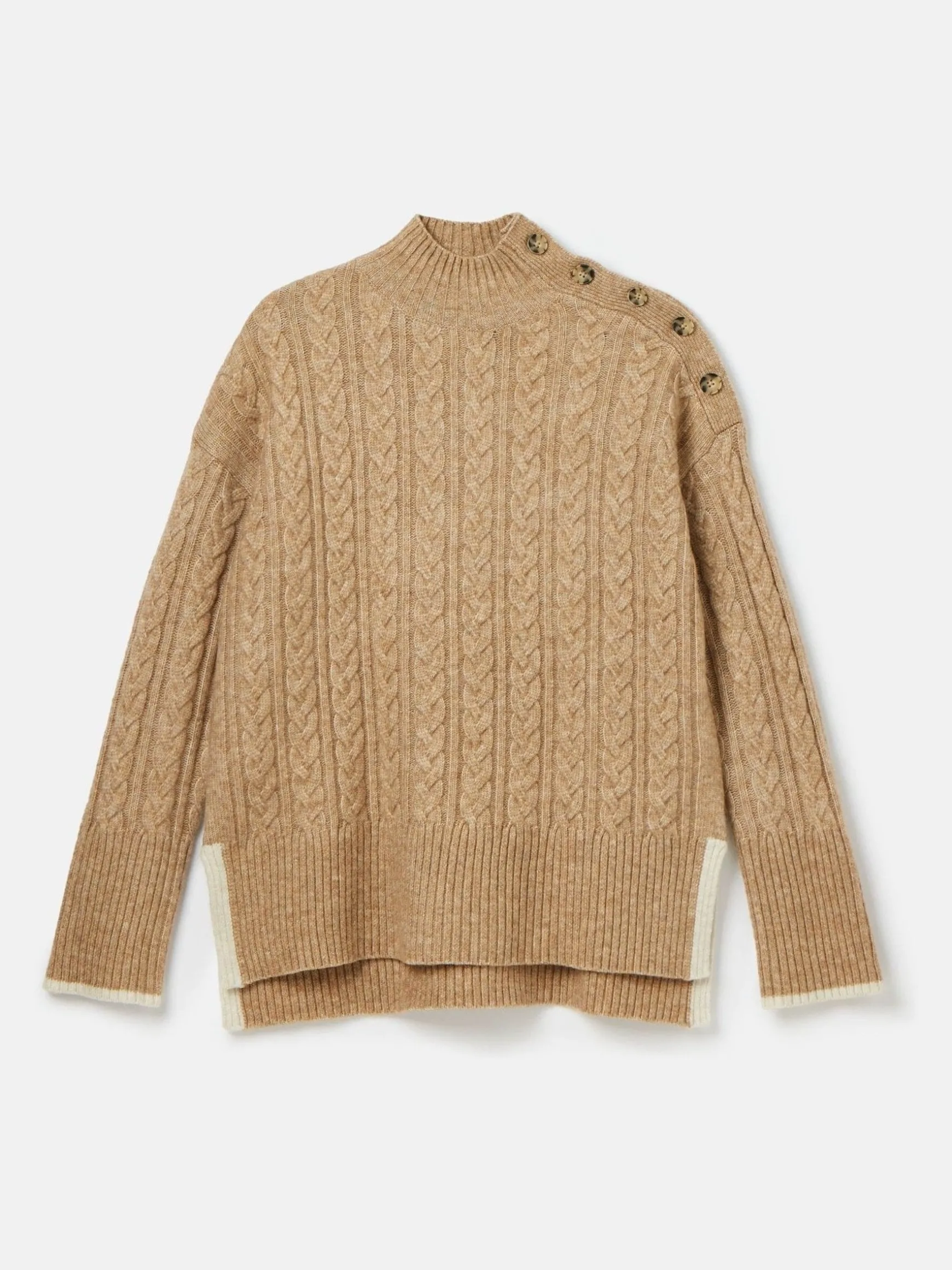 Be the first to review “Betsy Camel Button Shoulder Cable Jumper” Cancel reply