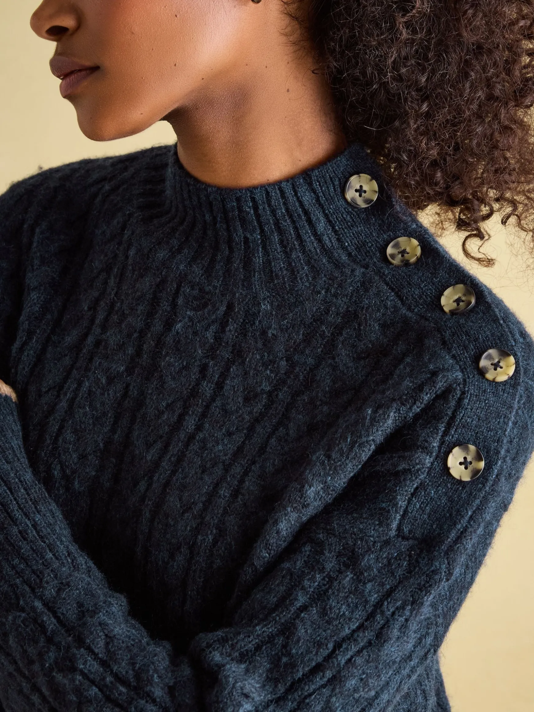Be the first to review “Betsy Navy Button Shoulder Cable Jumper” Cancel reply