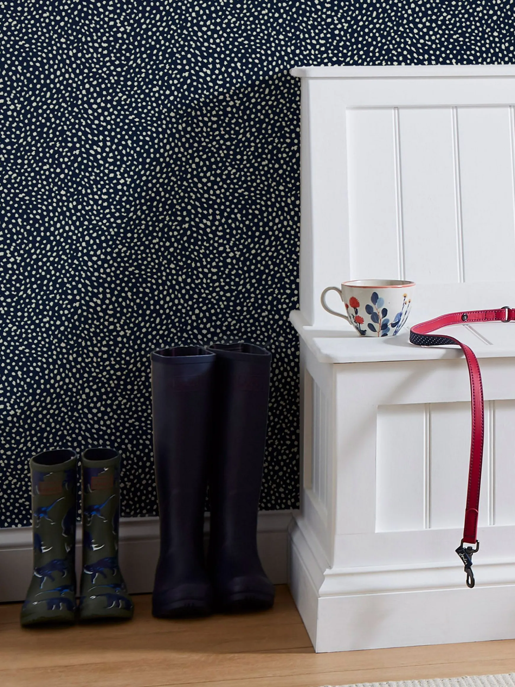 Dress your home in the textures of nature with this sophisticated feather print design. Drawing inspiration from the guinea fowl blush pink wallpaper, this ditsy dot print is eye-catching in its deep French navy colour palette. Printed on a matt substrate for a contemporary look and feel. This wallpaper is also paste-the-wall, making it easy to hang. Pattern Repeat: 73.6cm, Drop Type: Offset.
