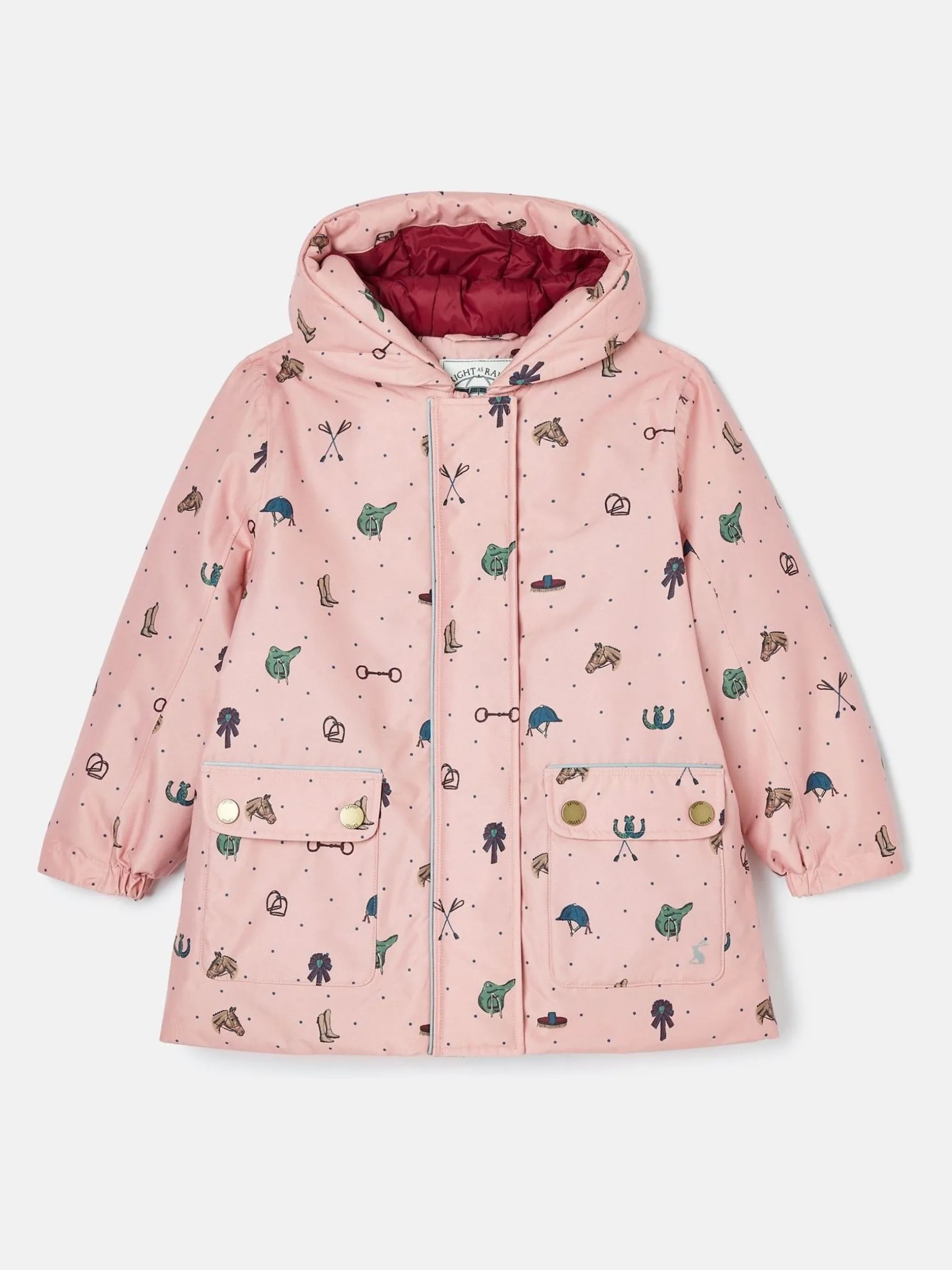 Girls’ Fairview Pink Horse Print Waterproof Coat with Quilted Lining