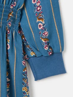 Featuring a decorative print, the Odelia is your little one’s autumn dress of dreams. A versatile style, it can be dressed-up for parties or dressed-down for the everyday. It’s made from 100% viscose, sits at a knee length with an a-line shape skirt and has an elasticated shirred waistband. The long sleeves with ribbed cuffs and round ribbed neck makes it a truly comfortable seasonal style. Knee length. Long sleeves with ribbed cuffs. Round ribbed neck. Elasticated shirred waist. A-line shape skirt. Gathered detailing to the neck. Hand-drawn print.
