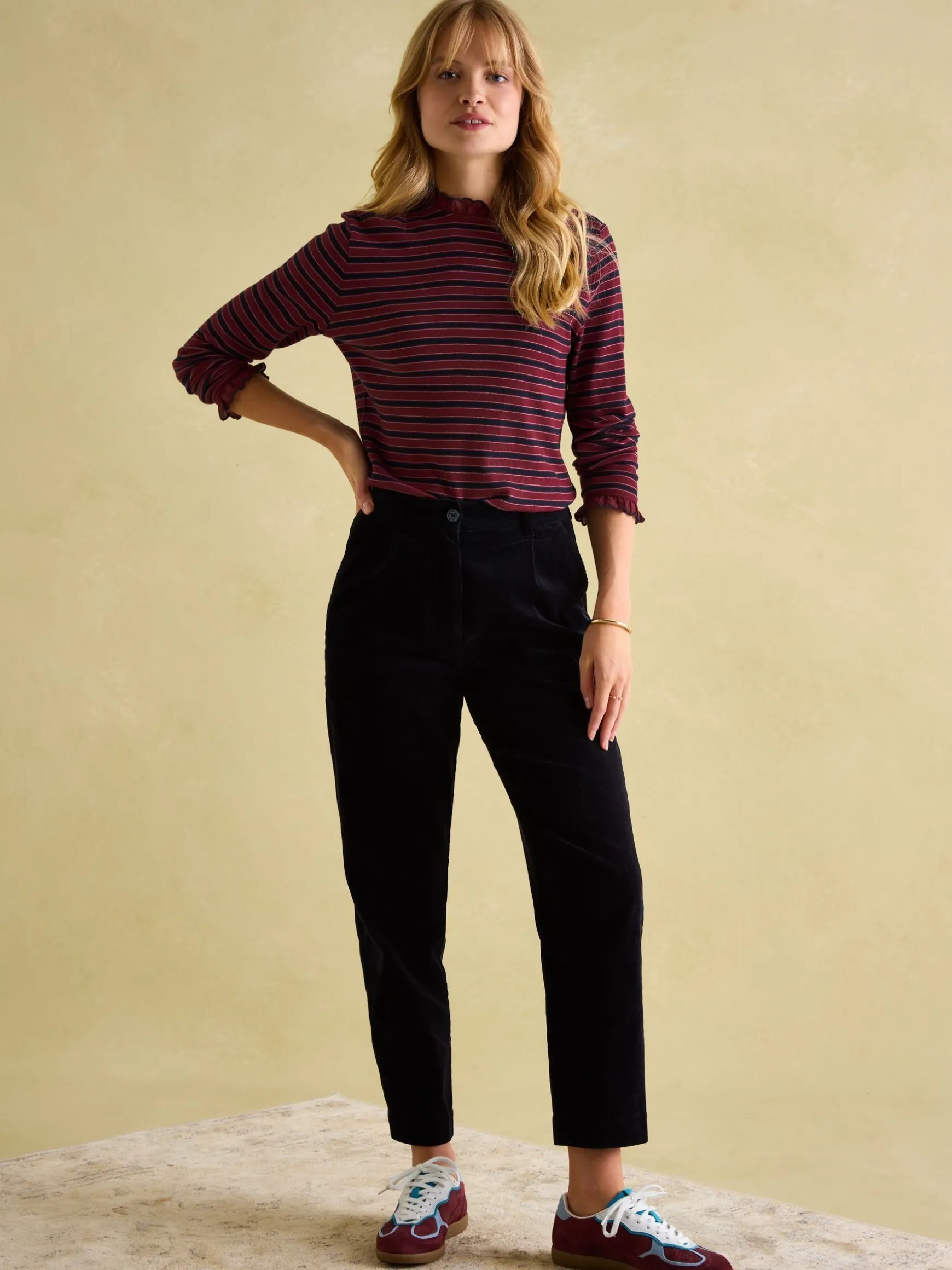 Build on your autumn layers with the Grace jersey top. With a slim fit, it acts as the perfect ‘first’ layer under knits and sweatshirts. It’s crafted from supremely soft jersey, has long sleeves and a frilled neck and cuffs. Buttons to the shoulders and an all-over stripe ensures it remains a stand-out style when worn alone with jeans in fairer weather too. 100% cotton jersey. Slim fit. Long sleeves with frilled cuffs. Buttons to the shoulders. Frilled neck.