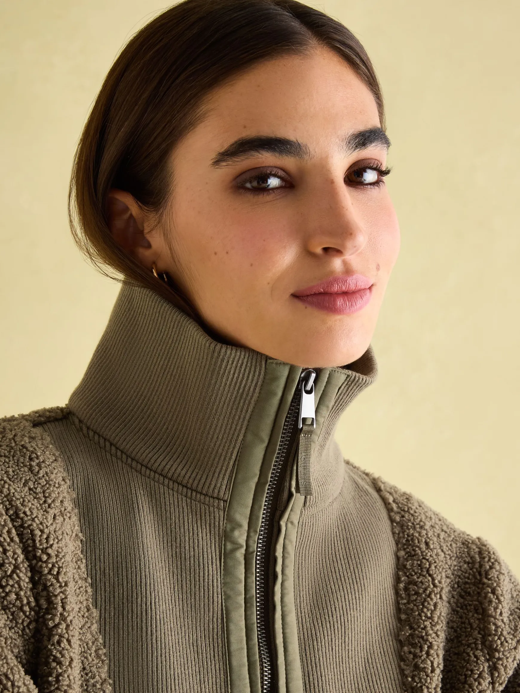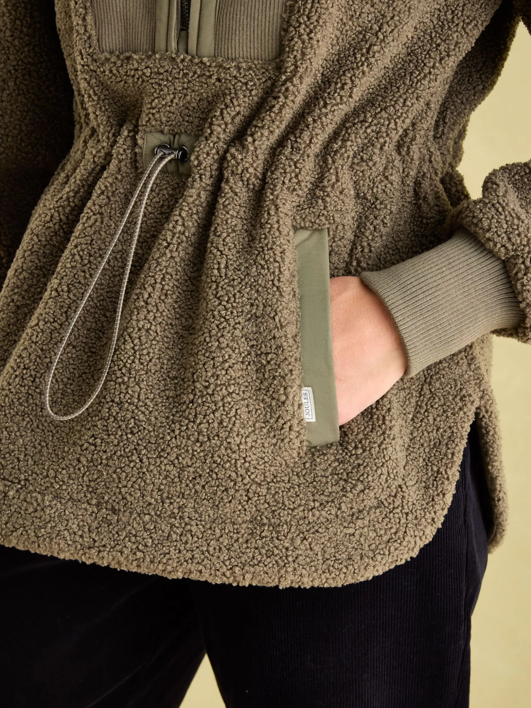 This is the simple fleece, elevated. Made for autumn and winter days, it will provide warmth, comfort and style in abundance. The relaxed shape means it can be pulled on over anything, the adjustable drawcord waist and curved dropped back hem keep things flattering, and practicality and style come in the form of handy pockets and and a stunning ribbed neck. This fleece will have you crossing your fingers for frosty mornings.nnBorg fleecenRibbed neckn3/4 zip fasteningnAdjustable waist drawcordnPocketsnDropped and curved back hem